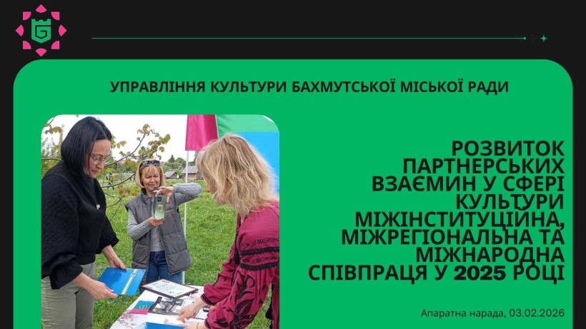 In 2025, one of the priority areas for the development of the Bakhmut territorial community was the development of inter-institutional, interregional, and international cooperation in the field of culture.