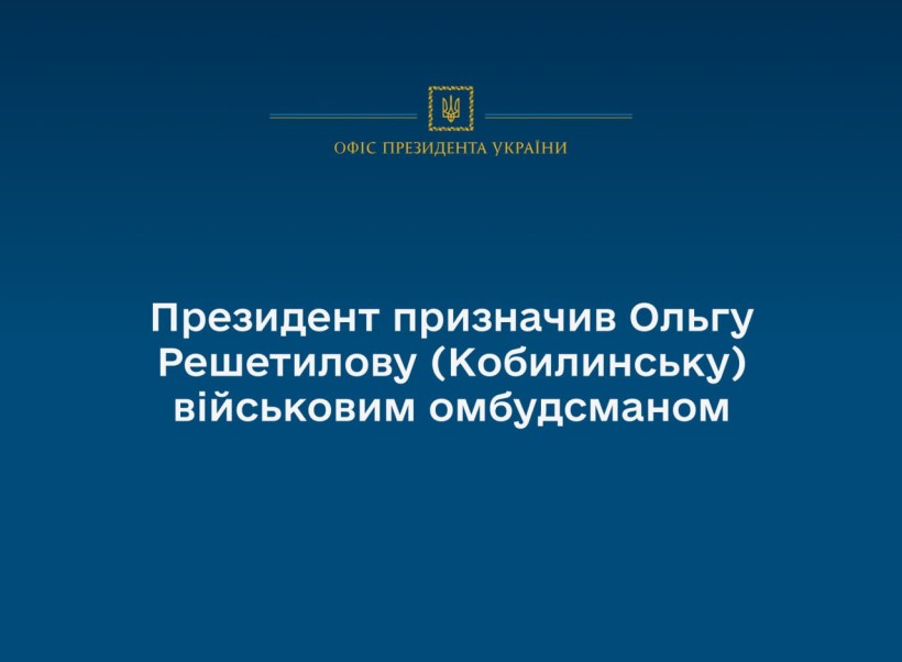 President of Ukraine Volodymyr Zelenskyy has signed a decree appointing Olha Reshetylova (Kobylynska) as the Military Ombudsman.