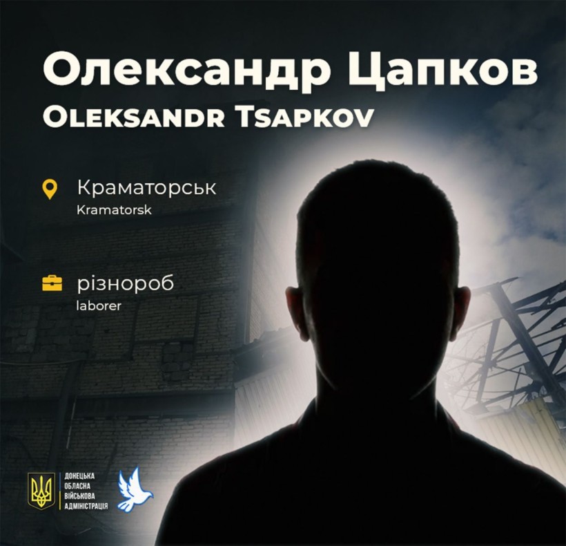 Oleksandr Tsapkov, 45, was killed by shelling on August 8 or 9, 2025, in the village of Serednie, Kramatorsk district.