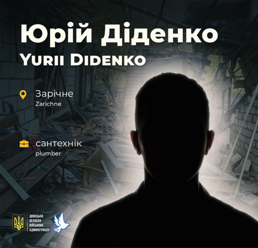Yurii Didenko, 40, was killed by Russian shelling on June 27, 2024, in the village of Zarichne, Kramatorsk district.