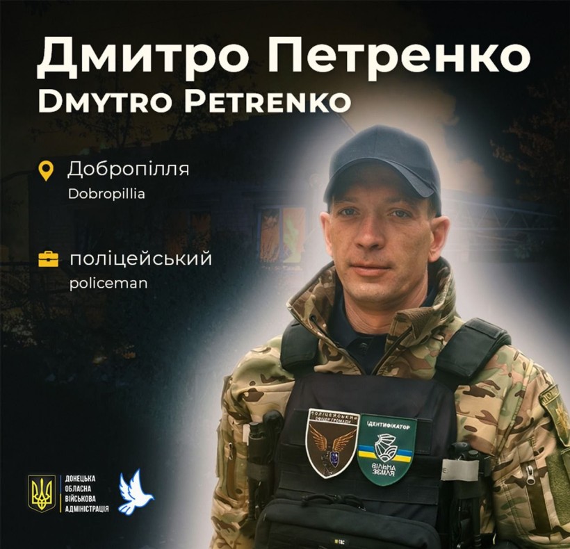 Police Captain Dmytro Petrenko was killed on 12 July 2024 while performing his duties in the city of Novohrodivka. That day, a Russian drone struck the police service vehicle. The officer was 38 years old forever.