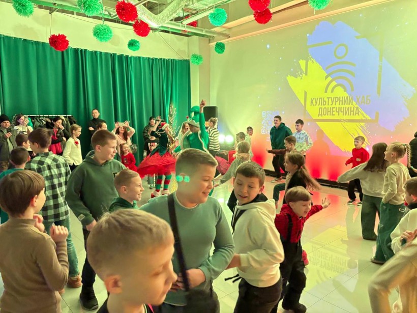 The space of the "Donetsk Region Cultural Hub" was transformed into a winter fairy tale. The children immersed themselves in a whirlwind of entertaining and educational activities. Their eyes burned with curiosity as they participated in master classes and sparkled with joy during games. At the end of the event, each child received a sweet gift.