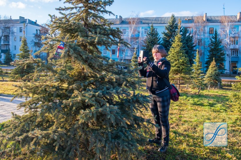 Саморобні прикраси робили відвідувачки простору БезМеж у Краматорську впродовж декількох майстерок. А потім зібралися разом і розвісили їх в центрі міста саме на тих деревах, які були посаджені у сквері вже після 2022 року.