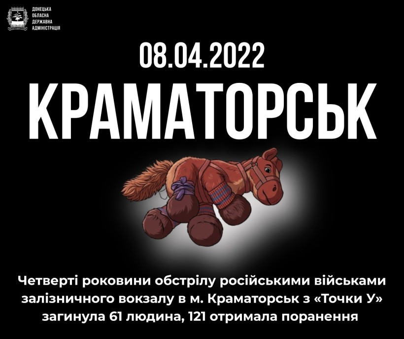 Вранці 8 квітня 2022 року російські війська завдали ракетної атаки по залізничній станції Краматорськ. Терористичний удар збройних сил росії був спрямований проти цивільних людей, що евакуйовувалися того дня через місто Краматорськ.