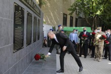 Під час урочистостей Прем'єр-міністр поклав квіти до стели "Вічна пам'ять героям!", на якій викарбувані імена 89 героїв військових частини 3027, 3035 та 3057, які віддали своє життя за незалежність та цілісність України. Учасники урочистостей вшанували хвилиною мовчання пам'ять воїнів, що загинули за незалежність та цілісність України.