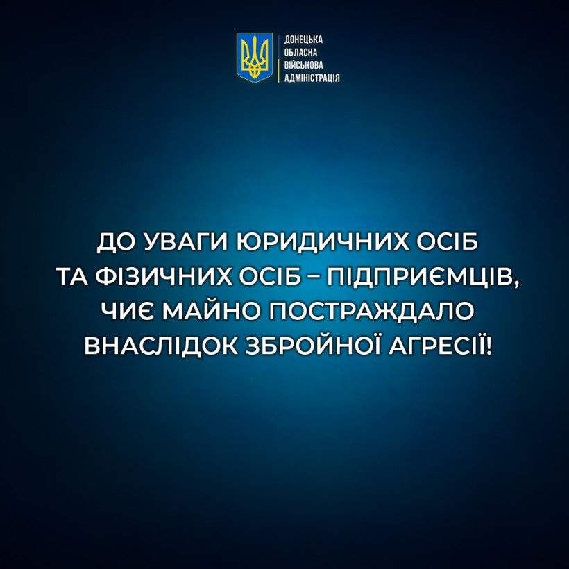 Донецька облдержадміністрація звертає увагу, що для фіксації пошкоджень чи знищення вашого майна внаслідок збройної агресії необхідно скористатись можливістю подання заяви до Реєстру пошкодженого та знищеного майна (РПЗМ).
