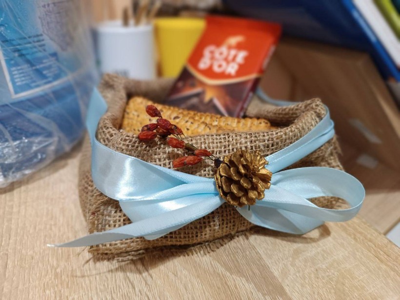 Кошики прикрашали атласними стрічками, сухоцвітами, ароматними зернами кави та іншими матеріалами, які підкреслювали особливість кожної роботи.