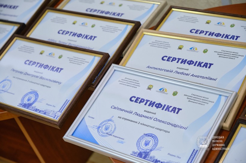 Ключі від квартир вручили голова Донецької обласної державної адміністрації, керівник обласної військово-цивільної адміністрації Павло Кириленко та керівник Слов’янської ВЦА Вадим Лях.