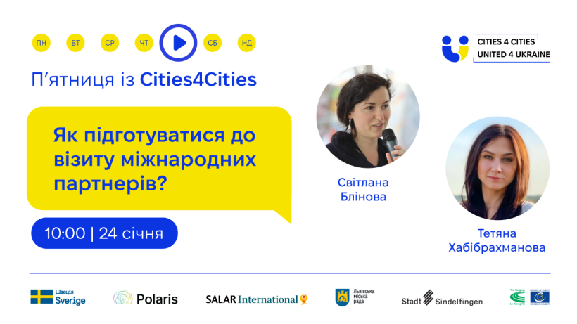 Повертаючись до ефіру «П’ятниці з Cities4Cities», що відбувся в кінці минулого тижня та мав тему «Як підготуватися до візиту міжнародних партнерів у громаду?», варто зазначити, що він вийшов, як завжди, легким, але дуже корисним з точки зору інформації, що подавалась. Гостя ефіру Тетяна Хабібрахманова, керівниця управління зовнішніх зв’язків і промоції Львівської міської ради, дала багато практичних порад, що були напрацьовані власним багаторічним досвідом, а модератор Світлана Блінова, координаторка ініціативи Cities4Cities, експертка з посилення спроможності громад, вдало підтримала дискусію. Врешті, маємо готовий стислий гайд щодо того, як запрошувати і отримувати позитивні відгуки, як розробляти програму візиту партнерів, як врахувати всі протокольні нюанси та в міру розбавити їх неформальною частиною і, звісно, як після цього зміцнити та надалі розширити відносини.