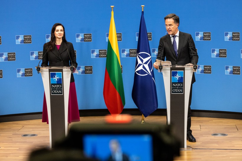 Генеральний секретар зазначив, що Литва є «зразком для наслідування» для союзників по НАТО, прагнучи досягти цього року «рекордних 5,38% ВВП на оборонні витрати». Він подякував Прем’єр-міністерці Ругінене за її особисте лідерство та роль Литви в підтримці України, зазначивши: «Литва також є одним із провідних донорів допомоги Україні. Якщо вимірювати щодо ВВП, ви є третім за величиною донором допомоги Україні у світі».
