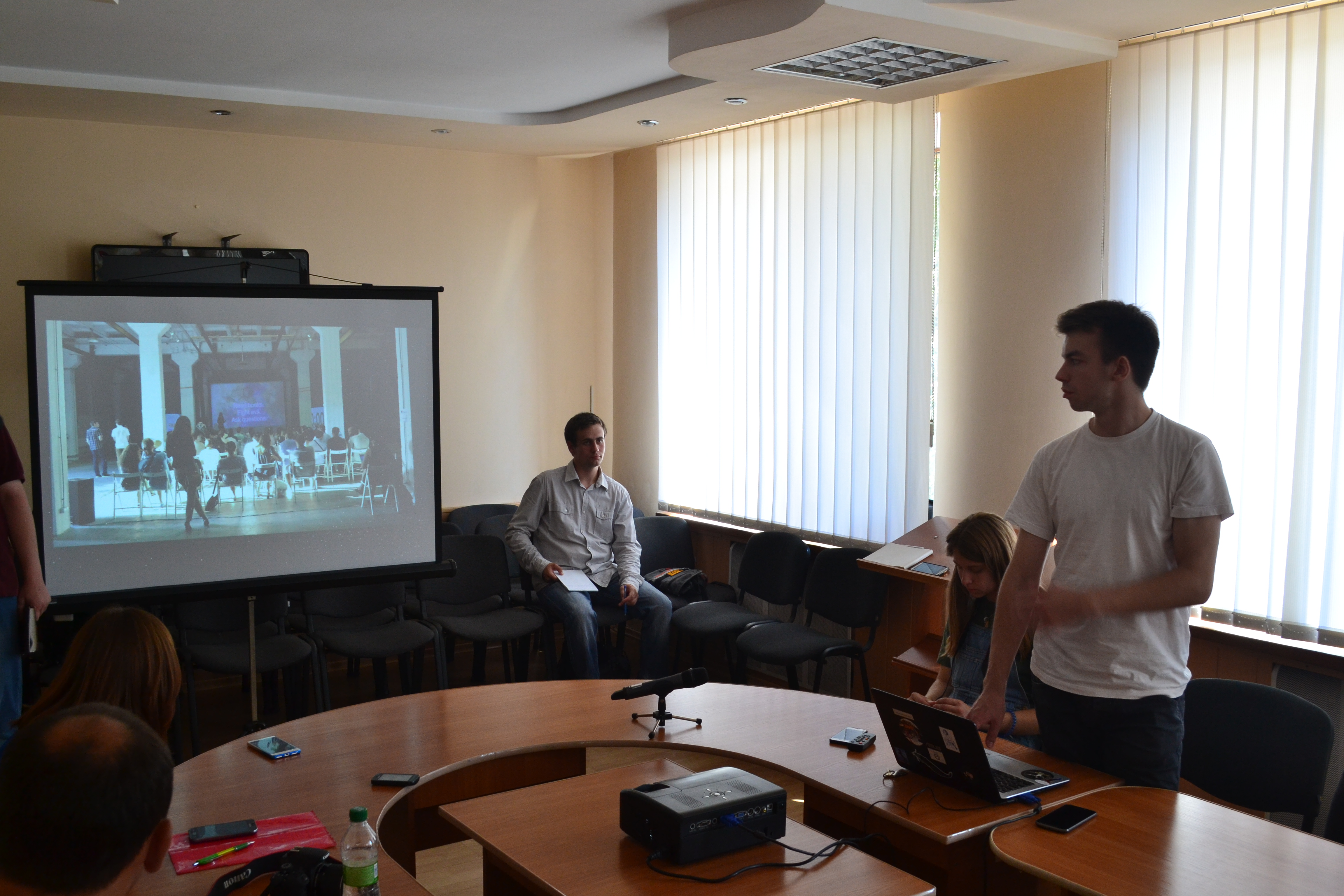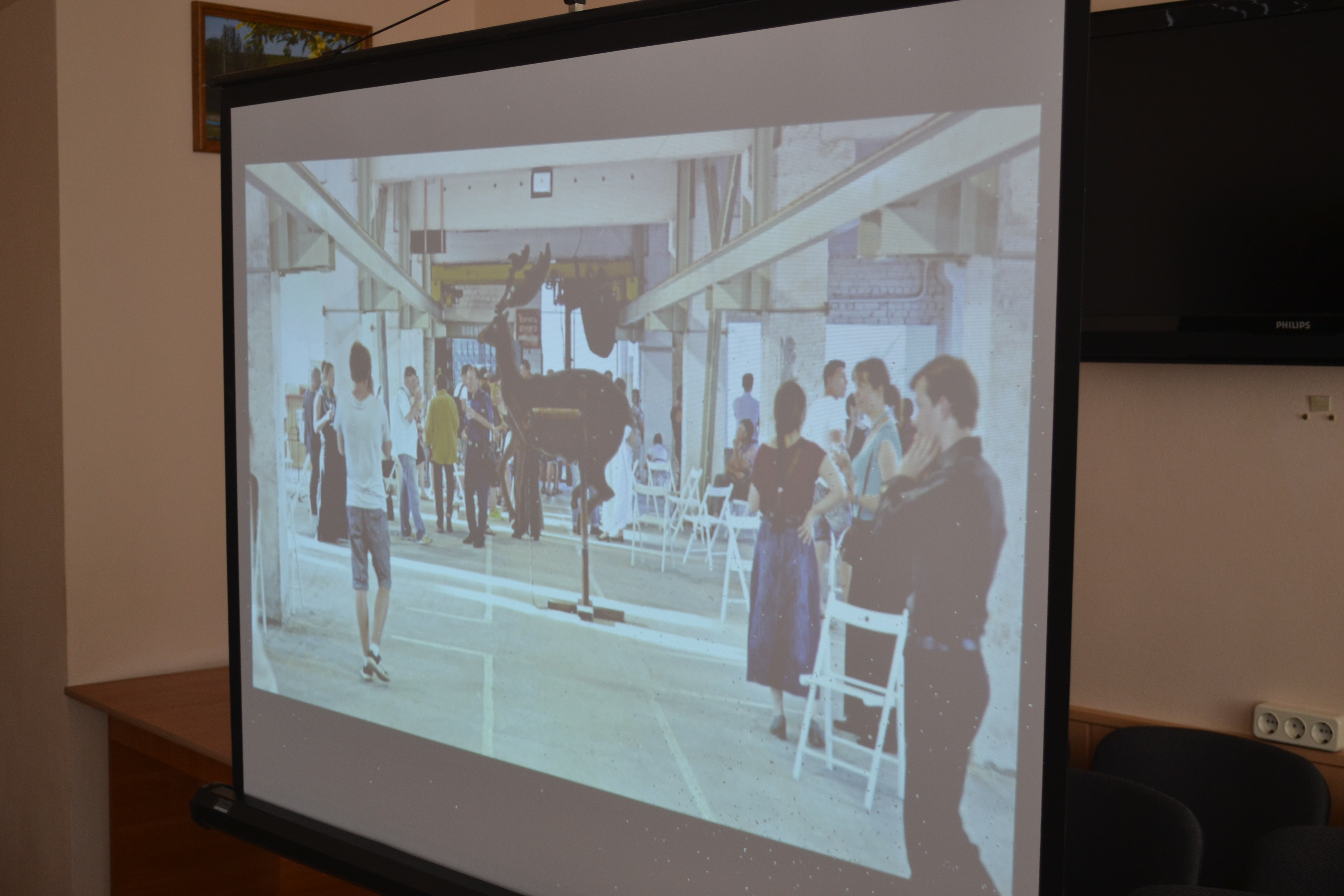 Дмитро Чепурний - координатор проекту «Зміна» фонду «Ізоляція» провів показ арт-проектів , які вони реалізували по всій країні, а також презентацію збірок публічних програм , які були розроблені фондом.