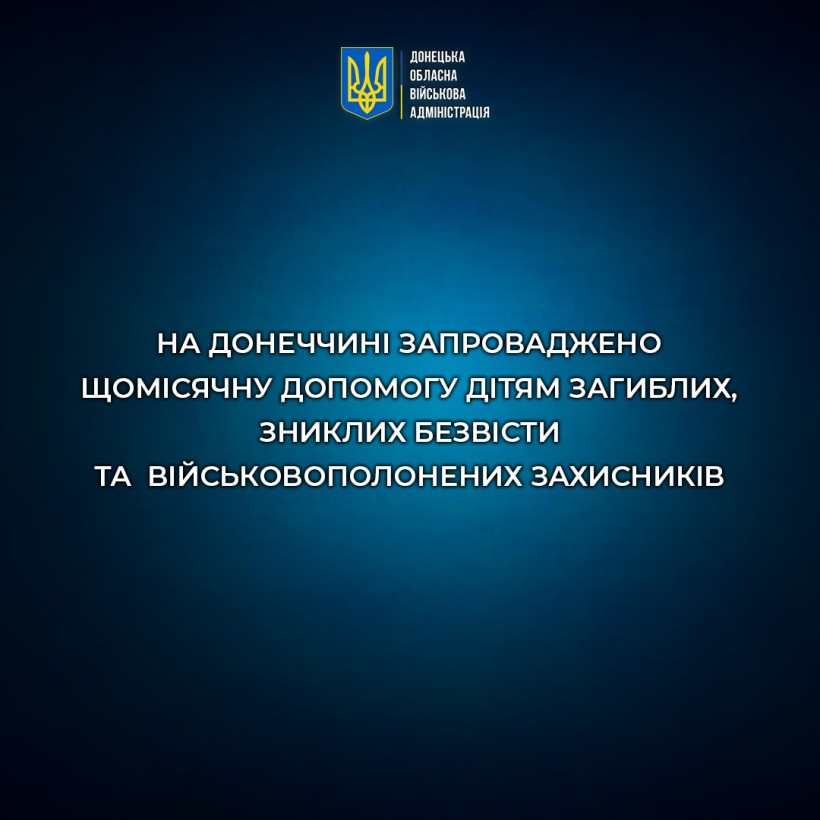 16 лютого набуло чинності розпорядження голови облдержадміністрації від 06.02.2026 № 80/5-26 № «Про затвердження Порядку використання у 2026 році коштів субвенції з обласного бюджету бюджетам територіальних громад Донецької області на надання щомісячної матеріальної допомоги дітям, які мають статус члена сім’ї загиблого(померлого) Захисника чи Захисниці України, військовослужбовців України, захоплених у полон, осіб, зниклих безвісті за особливих обставин під час проходження військової служби, у тому числі ти, які мають задеклароване/зареєстроване місце проживання (перебування) на території Донецької області та перемістилися (евакуювалися) за її межі».