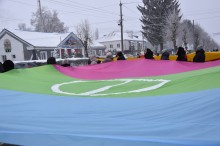 Під час урочистої ходи бахмутяни разом з місцевими мешканцями пліч-о-пліч пронесли новостворений символ вулицями селища.