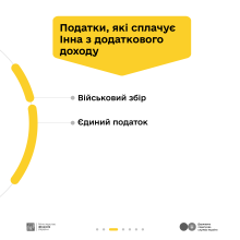Раз на рік Інна подає податкову декларацію через Електронний кабінет платника податків на вебпорталі ДПС. Також щомісяця вона сплачує військовий збір та єдиний податок. Єдиний соціальний внесок з доходу від здачі квартири в оренду Інна не сплачує, бо цей податок вираховується з її офіційної зарплати вчительки роботодавцем.