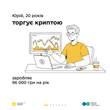 20-річний Юрій розібрався з криптовалютою, зареєструвався на біржі та слідкує за коливаннями на ринку. Щомісяця від операцій із купівлі-продажу крипти він отримує близько 8 тис. грн (24 тис. грн/квартал; 96 тис. грн/рік).
