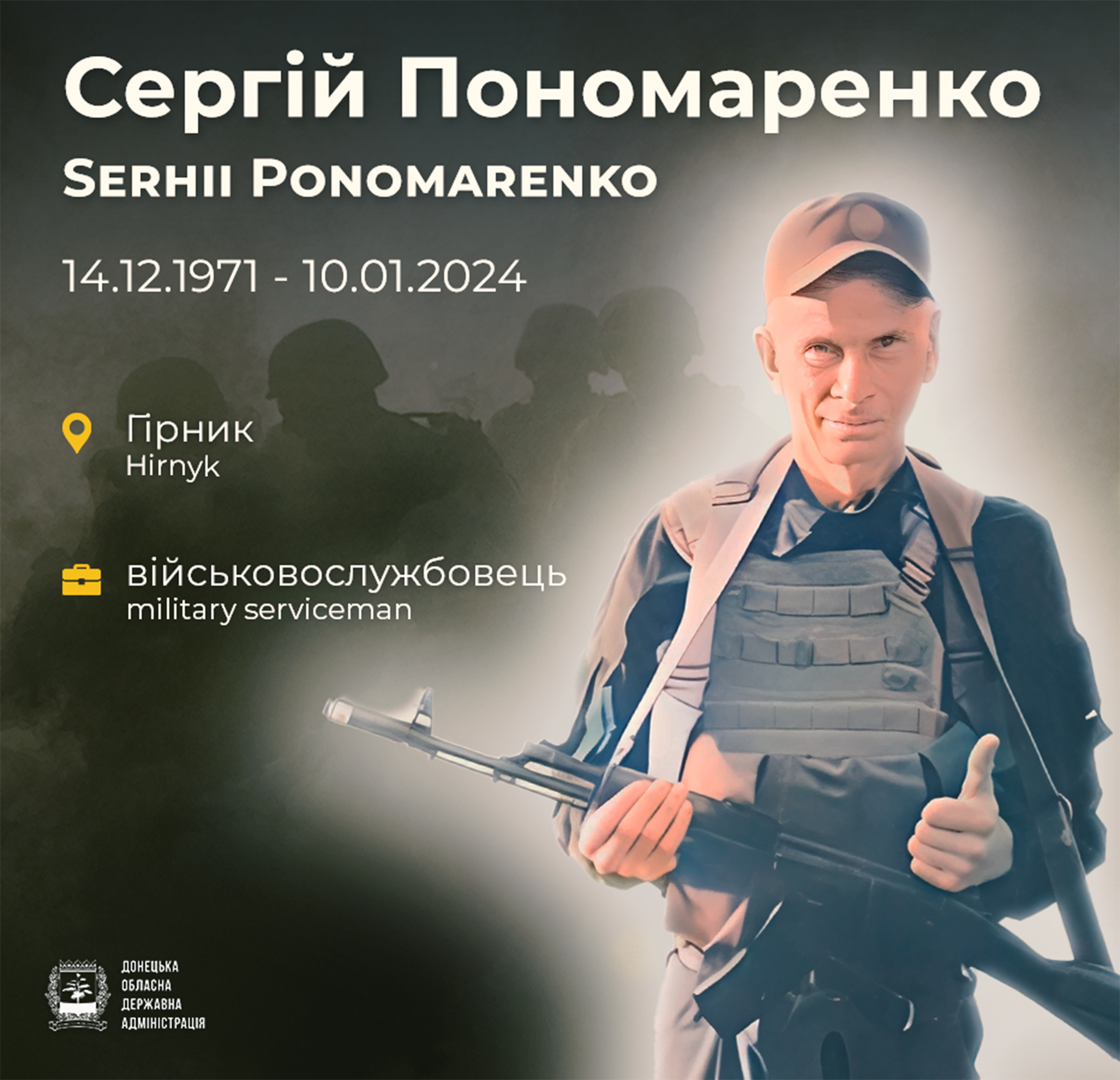 Народився 14 грудня 1971 року у місті Гірник Покровського району Донецької області. З початком війни став на захист України.