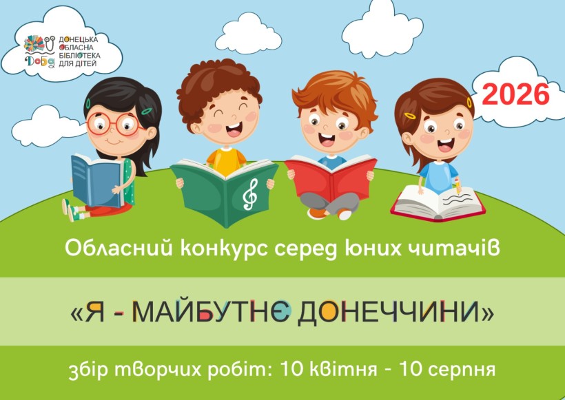 Донецька обласна бібліотека для дітей за підтримки облдержадміністрації запрошує талановитих дівчат і хлопців Донецької області взяти участь у шостому сезоні обласного конкурсу серед юних читачів «Я – майбутнє Донеччини – 2026»!
