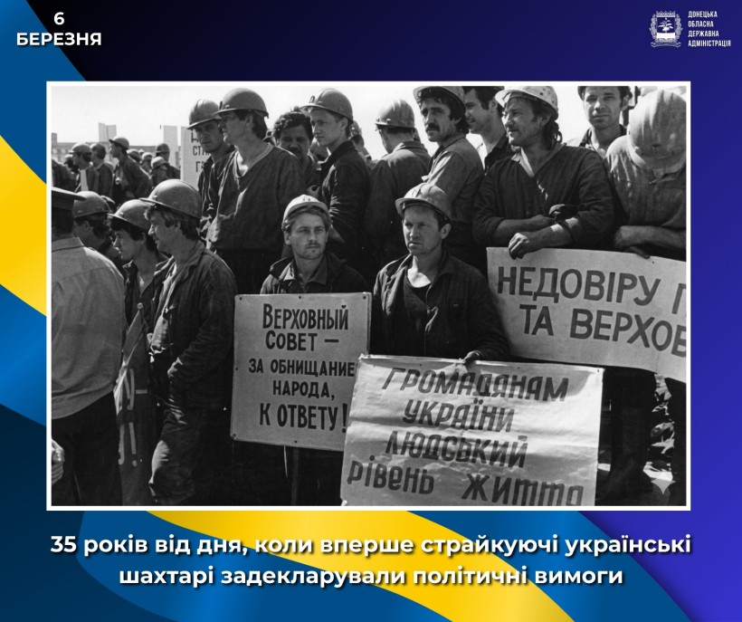 Тридцять п’ять років тому український робітничий рух зробив крок, який став важливою віхою на шляху до державної незалежності. Уперше страйкуючі шахтарі України відкрито задекларували не лише соціально-економічні, а й політичні вимоги, тим самим долучившись до формування нового суспільного порядку.