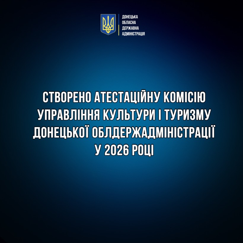17 лютого 2026 року відбулось перше засідання атестаційної комісії управління культури і туризму Донецької обласної державної адміністрації, персональний склад якої затверджено наказом управління культури і туризму Донецької обласної державної адміністрації від 16.02.2025 № 12-од/193/26.