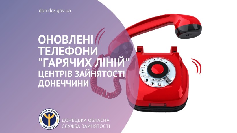 За консультацією з питань зайнятості звертайтеся за телефонами «гарячих ліній» центрів зайнятості Донеччини https://bit.ly/3rLgZtT: