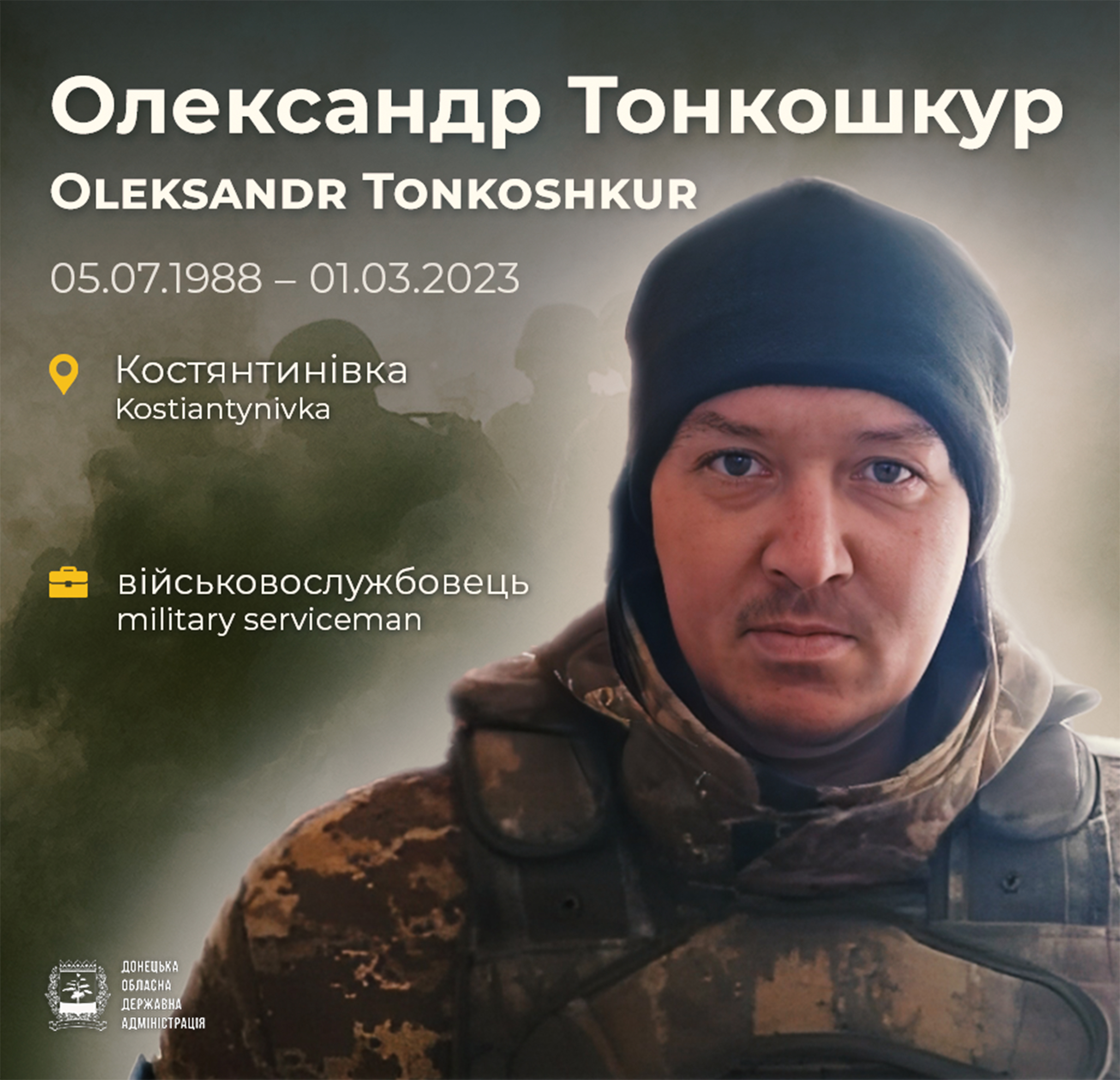 Випускник Костянтинівської школи №17 та сільськогосподарського технікуму. Багато років присвятив праці на залізниці (станція Горлівка) та в місті Краматорську. Після початку повномасштабного вторгнення переїхав на Тернопільщину, де прийняв вольове рішення стати на захист Батьківщини. Добровільно вступив до лав територіальної оборони, пройшов фахову підготовку та вирушив на одну з найгарячіших ділянок фронту — Бахмутський напрямок, щоб вибивати ворога з рідної Донецької землі.