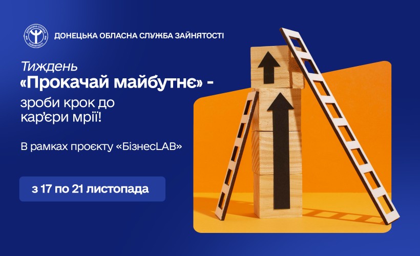 З 17 по 21 листопада 2025 року Донецька обласна служба зайнятості в рамках проєкту «БізнесLAB» запрошує молодь долучитися до Тижня «Прокачай майбутнє» — серії подій, присвячених Дню студента та Всесвітньому дню дитини.
