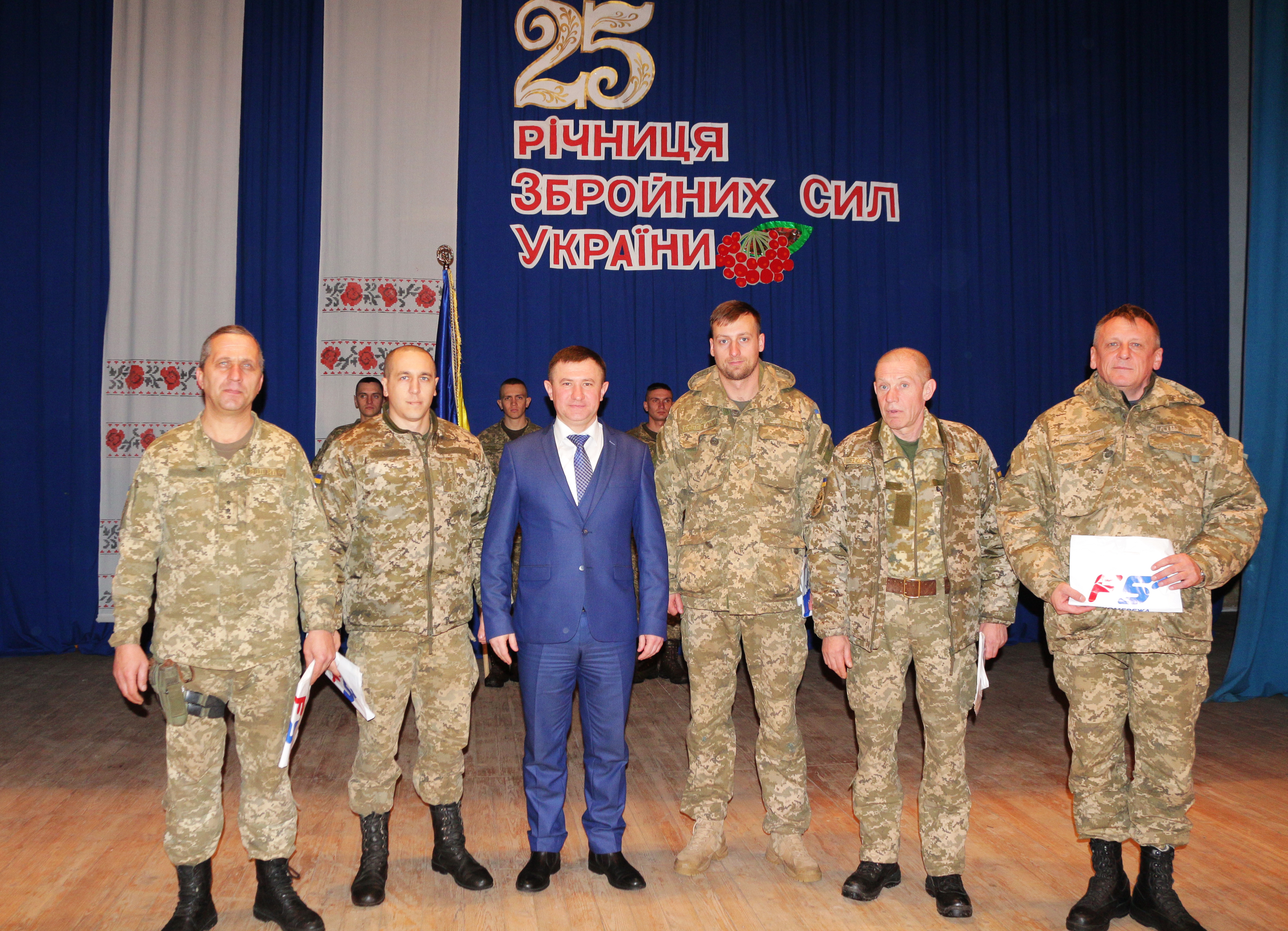 Урочистості відкрив голова Артемівської райдержадміністрації Володимир Бохонов. Від імені всіх жителів Бахмутського району він привітав військовослужбовців із професійним святом і кращим представникам української армії за сумлінне виконання службових обов’язків і з нагоди 25-ї річниці з Дня утворення Збройних Сил України вручив Почесні Грамоти і Подяки Артемівської райдержадміністрації та медалі «За оборону рідної держави».