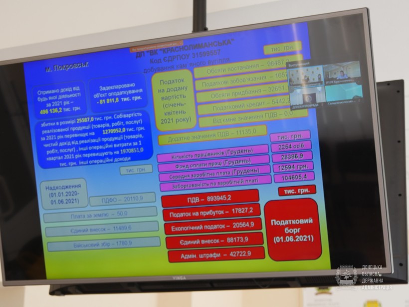 На засіданні обговорили питання про стан і перспективи погашення заборгованості із заробітної плати, єдиного внеску на загальнообов’язкове державне соціальне страхування та заборгованості з податків та зборів перед бюджетом державного підприємства «Вугільна компанія «Краснолиманська» (м. Покровськ) та державного підприємства «Селидіввугілля» (м. Селидове).