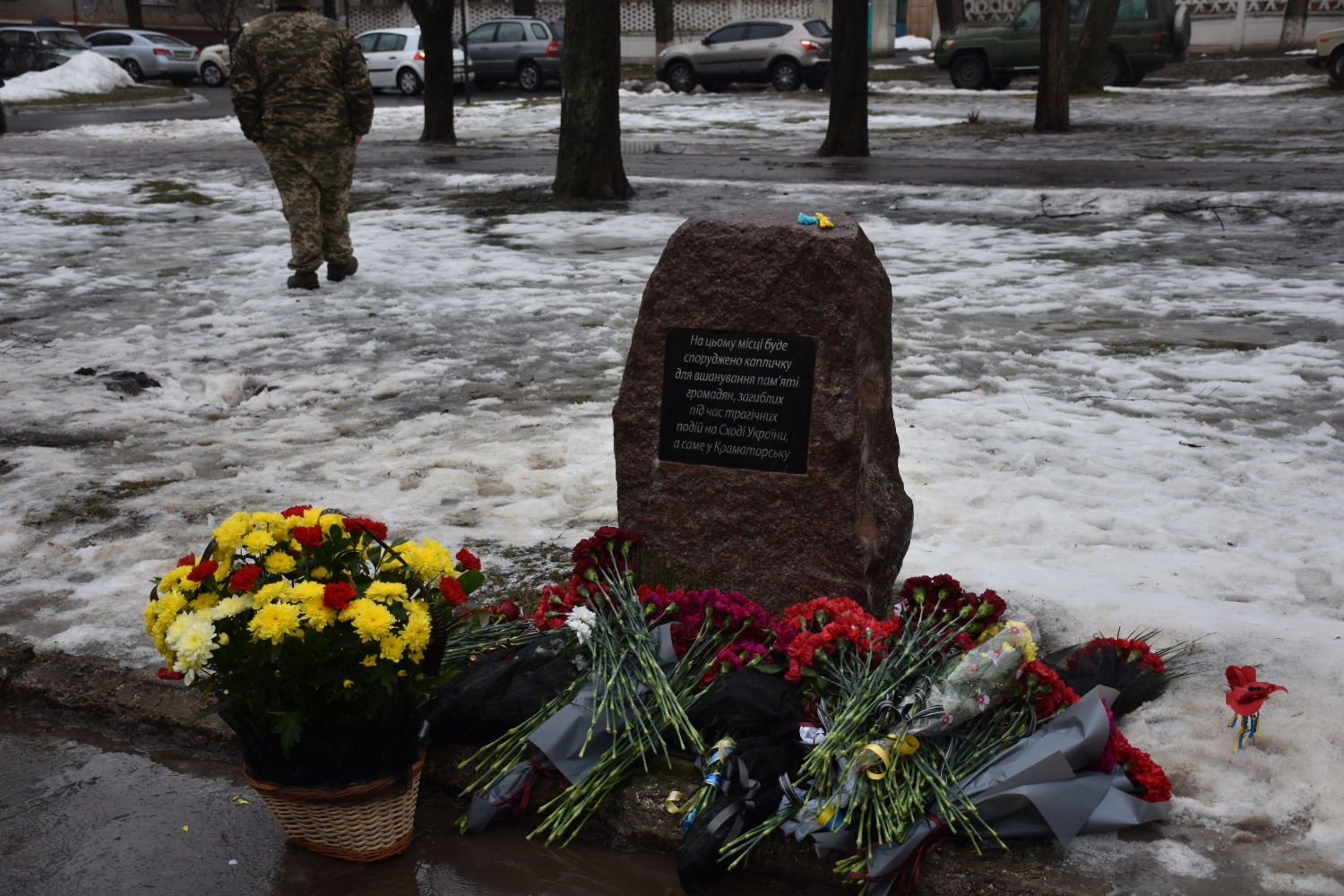 Сьогодні у Краматорську біля закладного каменю у Сквері Героїв вшанували пам'ять загиблих під час обстрілу 10 лютого 2015 року. Краматорські священнослужителі здійснили молитву за мир, після чого заступник голови – керівник апарату облдержадміністрації Сергій Добряк разом представниками міської адміністрації, військовослужбовцями, рятувальниками та усіма небайдужими громадянами поклали квіти до меморіального каменю, аби вшанувати пам’ять загиблих.