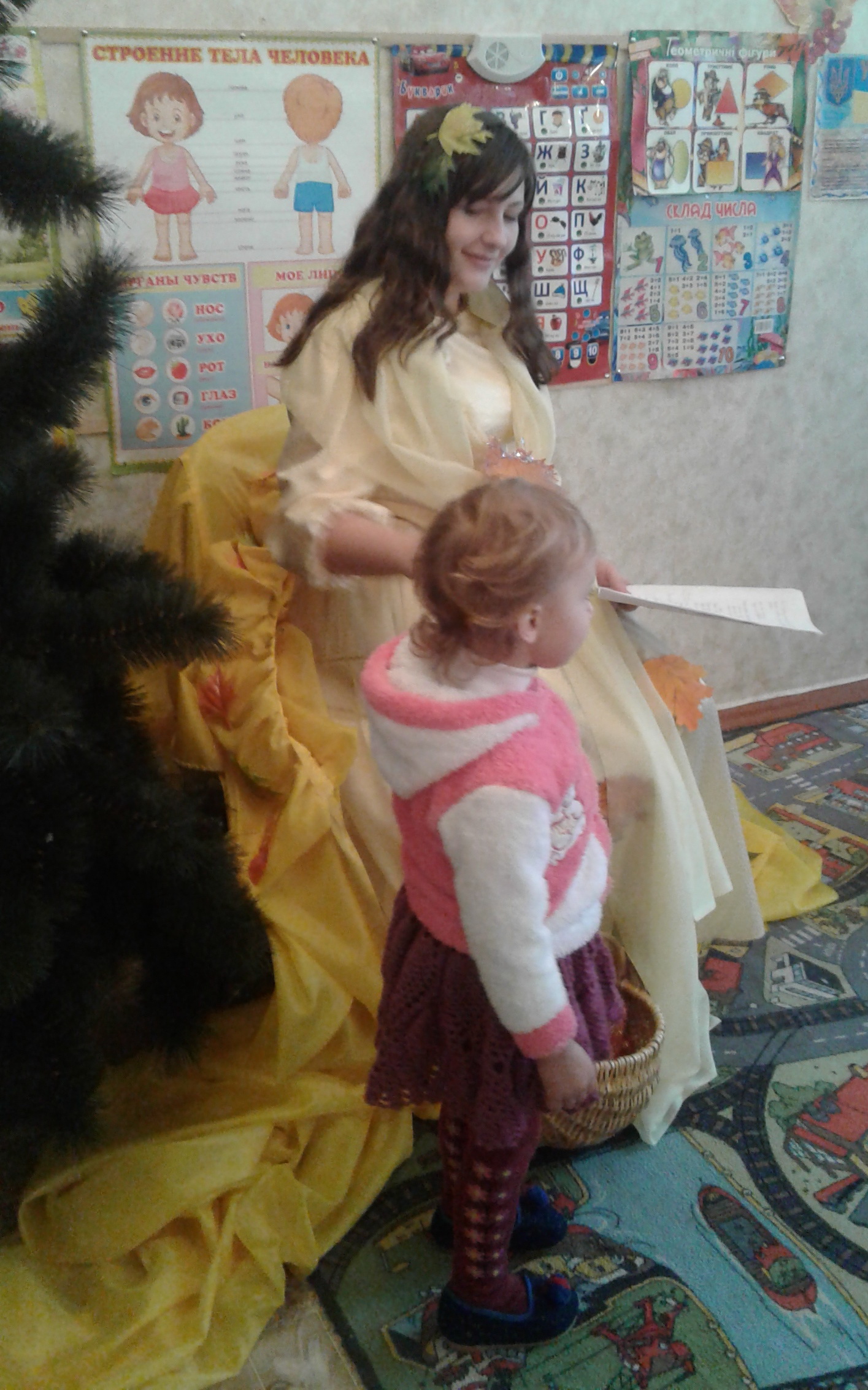 До дітей завітав колектив театрального гуртка «Радість» Нікольського районного Будинку дитячої творчості. Ними була презентована казка «Пригоди у чарівному лісі». Діти із захопленням спостерігали за принцесою та гномом і дуже завзято допомагали їм виганяти злого вовка. Потім вихователі провели низку рухливих ігор для діточок та артистів. В кінці свята всіх пригощали дарунками осені: яблуками, грушами та виноградом.