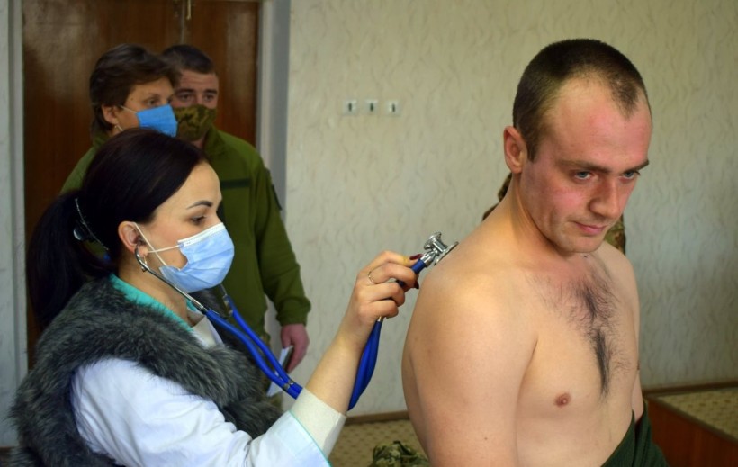 Перед процедурою армійців оглядають та вимірюють їм температуру.