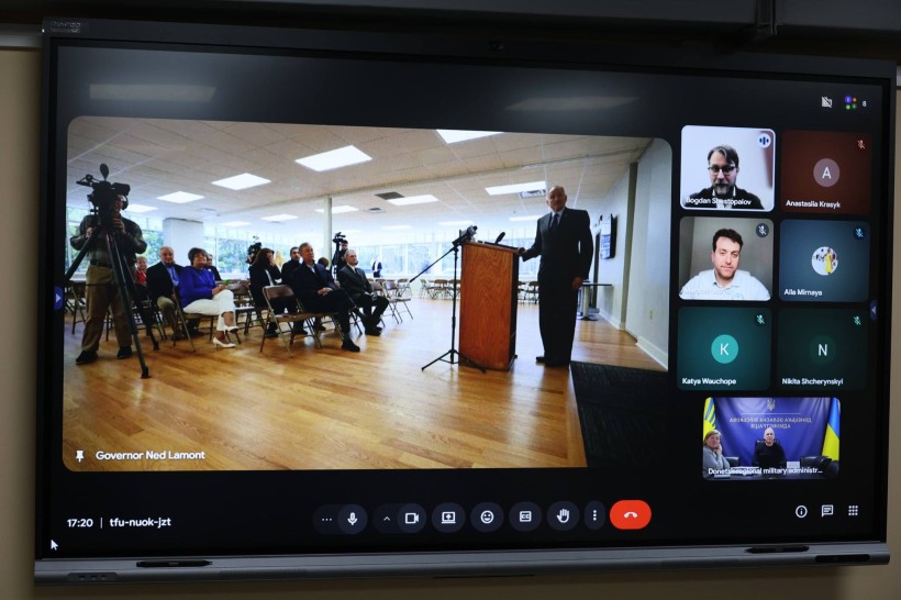 Під час спілкування представники організації Ukraine Aid International передали оригінал угоди про побратимство, а також символічний подарунок від Донеччини — картуш із малим гербом Донецької області.