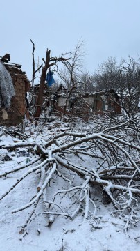 Росіяни скинули на місто три авіабомби. Повністю зруйновано 2 приватні будинки, пошкоджено ще 42. Також пошкоджено 4 автівки.