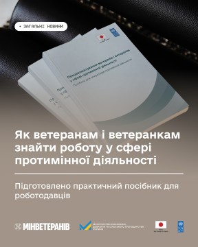 Ознайомитися з посібником можна за посиланням: https://www.undp.org/uk/ukraine/publications/pratsevlashtuvannya-veteraniv-i-veteranok-u-sferi-protyminnoyi-diyalnosti-posibnyk-dlya-operatoriv-protyminnoyi-diyalnosti