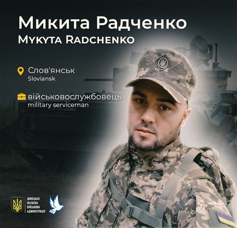 Солдат Микита Радченко поліг 1 листопада 2024 року під час виконання бойового завдання поблизу села Шахтарське Волноваського району – його група потрапила під артилерійський обстріл. Воїн отримав поранення, несумісне з життям. Захисникові було 32 роки.