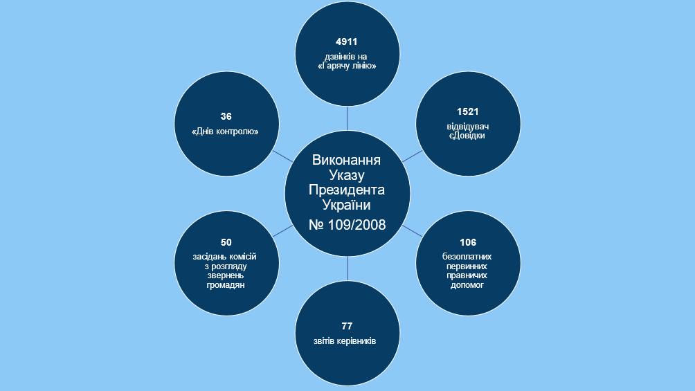 На виконання вимог статті 40 Конституції України, Закону України «Про звернення громадян», Указу Президента України від 07 лютого 2008 року № 109/2008 «Про першочергові заходи щодо реалізації та гарантування конституційного права на звернення до органів державної влади та органів місцевого самоврядування» (далі – Указ Президента України від 07 лютого 2008 року № 109/2008) Донецькою обласною державною адміністрацією, обласною військовою адміністрацією (далі – облдержадміністрація) протягом 2025 року проводилась системна робота стосовно розгляду звернень громадян та контролю за дотриманням законодавства про звернення громадян у місцевих органах влади та органах місцевого самоврядування Донецькій області.